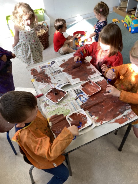 We onderzochten ook of het een jongen of een meisje – meikever was. Na zoveel kijken en voelen was het tijd om zelf een meikever te knutselen natuurlijk! Schilderen met rietjes is een vieze boel, maar zo konden we strepen op de meikever zijn schild goed nabootsen.